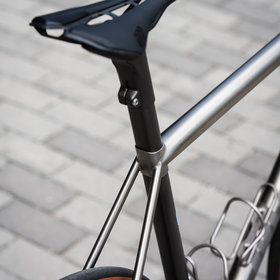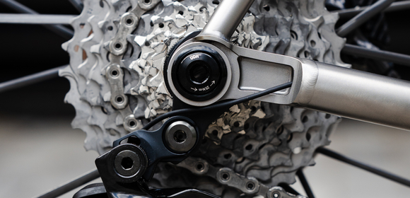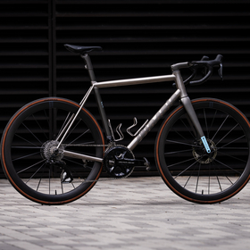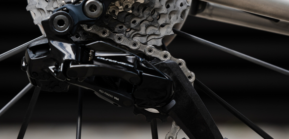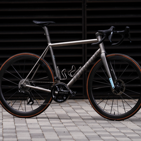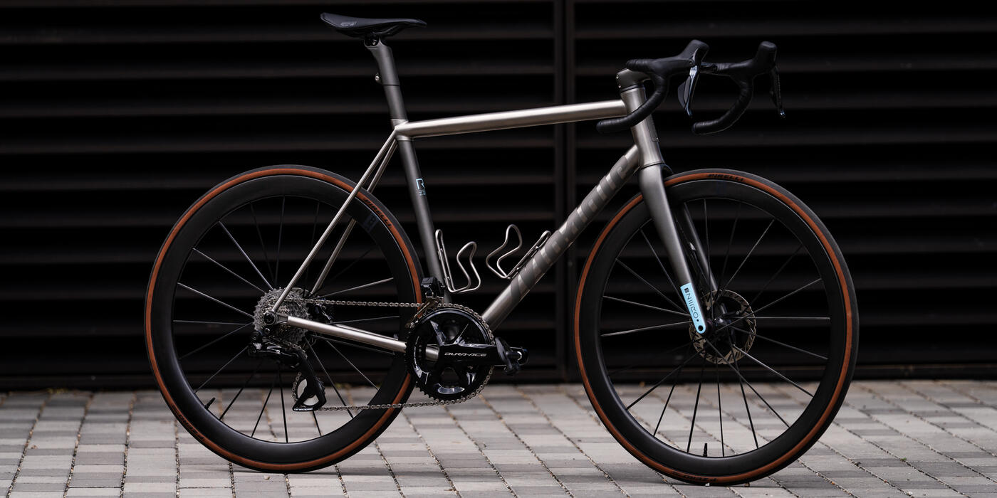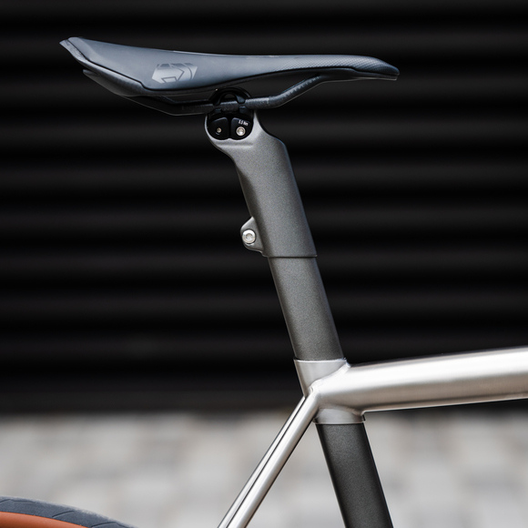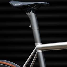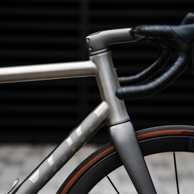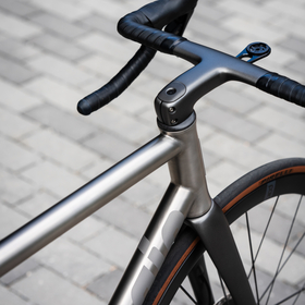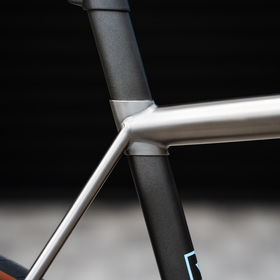 highlights the titanium frame with painted carbon accents